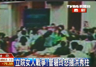 但國(guó)民黨“立委”洪秀柱上前制止時(shí),將綠營(yíng)女“立委”手中的廣告牌撥向一旁管碧玲的助理,造成助理眼睛受傷,管碧玲不滿上前理論,情急下居然打了洪秀柱一巴掌,讓洪秀柱火冒三丈爆發(fā)拉扯。