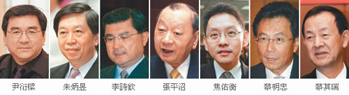 這新增加的七位企業(yè)界董事包括了,潤(rùn)泰集團(tuán)總裁尹衍梁、臺(tái)壽保董事長(zhǎng)朱炳昱、英業(yè)達(dá)董事長(zhǎng)李詩(shī)欽、耀華電子董事長(zhǎng)張平沼、華新科技董事長(zhǎng)焦佑衡、富邦金控董事長(zhǎng)蔡明忠以及寶成國(guó)際集團(tuán)總裁蔡其瑞。臺(tái)塑、臺(tái)泥兩席原捐助董事,是由臺(tái)塑集團(tuán)總裁王文淵、臺(tái)泥董事長(zhǎng)辜成允出任。