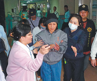 蘇治芬在檢方訊問(wèn)結(jié)束后約一個(gè)半小時(shí),出現(xiàn)身體不適,所方隨即安排救護(hù)車(chē),把她送往醫(yī)院。蘇治芬下車(chē)后,多次搖著被銬雙手,表明不愿躺上推床,堅(jiān)持走入病房。因身體虛弱,一路由醫(yī)護(hù)人員扶著。