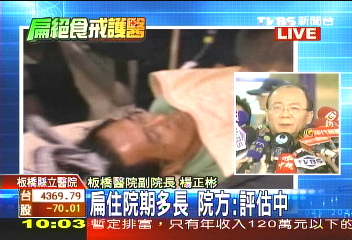 陳水扁生命現(xiàn)象漸趨穩(wěn)定,仍得住院觀察,究竟會住多久,醫(yī)院話說的很保守,強調(diào)無灌食計劃。圖片來源:臺灣TVBS