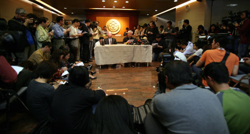 各方傳媒早已眾集在“法務(wù)部”一樓大廳等候世紀(jì)大案的起訴書。據(jù)悉,起訴書正文約有209頁、59頁表格及13頁的圖,合計(jì)約281頁。