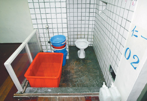 房舍中浴室兼廁所,陳水扁只能蹲著洗澡。圖片來(lái)源:臺(tái)灣《聯(lián)合報(bào)》
