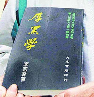 《厚黑學(xué)》主要是論述中國(guó)歷史上英雄豪杰之所以成功,無(wú)非“面厚、心黑”。國(guó)民黨“立委”得知扁收到《厚黑學(xué)》后多所嘲諷,黨團(tuán)書(shū)記長(zhǎng)張碩文說(shuō):“阿扁其實(shí)就是最好的《厚黑學(xué)》,前無(wú)古人、后無(wú)來(lái)者,他是最好的活教材!