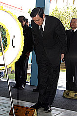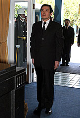 中新網1月13日電 據“中央社”報道,蔣經國去世21周年,馬英九今天上午8時30分至桃園頭寮陵寢致祭。之后前往大溪老街購買著名地方特產,帶頭刺激消費。
