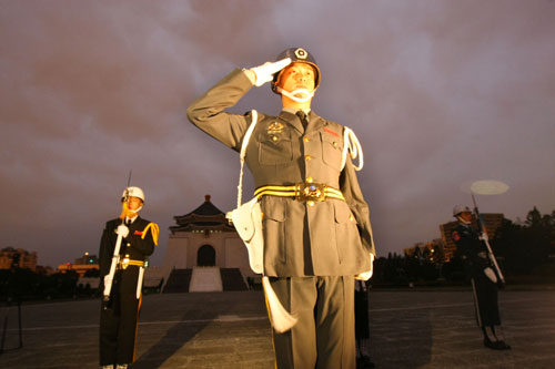 據(jù)“中央社”報(bào)道,與以前不同,臺(tái)軍三軍儀仗隊(duì)特別策劃新的交接方式,由單一軍種改為陸?杖妰x隊(duì)輪流執(zhí)勤,參觀的民眾每天可以看見(jiàn)不同的制服和表演風(fēng)格。