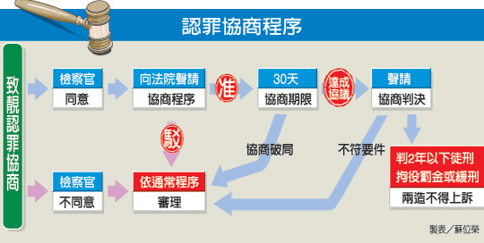 何謂“認(rèn)罪協(xié)商”?簡單說就是被告認(rèn)罪后,與檢察官、法官針對罪名、刑度等相關(guān)事項進行協(xié)商的刑事訴訟制度。在認(rèn)罪協(xié)商程序中,被告須與檢察官協(xié)商罪名、刑度后,向法院陳報,經(jīng)法院同意下開庭制作“協(xié)商筆錄”,即完成協(xié)商程序,案件就不能再上訴,宣告定讞。不過,公訴檢察官在與被告協(xié)商前,必須先征詢偵查檢察官的意見,甚至還要經(jīng)檢察長批示準(zhǔn)許后,才能實施。