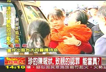 身穿橘紅色棉襖的吳淑珍的神情看起來,氣色相當不錯,稍微露出笑容,還和現(xiàn)場民眾揮手致意;在護士看護的協(xié)助下,順利搭乘電梯,直接進入北院第七法庭。