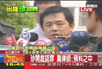 中新網(wǎng)2月10日電 據(jù)臺灣TVBS報道,陳水扁夫人吳淑珍今天(10日)出庭應(yīng)訊,當(dāng)庭承認偽造文書和洗錢罪,對此,陳水扁委任律師鄭文龍表示,早在預(yù)料之中。