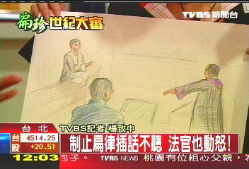 TVBS記者口述:“關(guān)于陳水扁的庭期里面,這一次應(yīng)該是最火爆的一次,當(dāng)時(shí)檢察官他是站起來,他的雙手指著陳水扁,昨天的身體狀況我們也發(fā)現(xiàn)了,確實(shí)他是不太好,但是為什么律師要發(fā)言那么久,這個(gè)時(shí)候律師鄭文龍把手舉起來一直搖手說,沒有啊、沒有啊。”
