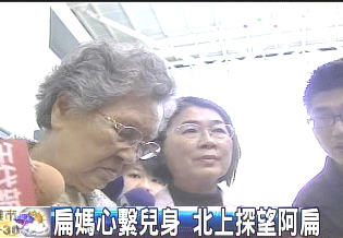 中新網(wǎng)4月13日電 據(jù)臺(tái)灣TVBS報(bào)道,陳水扁母親今天上午與女兒從臺(tái)南出發(fā),搭乘高鐵北上探視陳水扁。