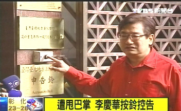 中新網(wǎng)4月22日電 據(jù)臺灣TVBS報(bào)道,國民黨“立委”李慶華今日在“立法院”里被民進(jìn)黨“立委”邱議瑩甩了一巴掌,李慶華下午2點(diǎn)多到法院按鈴控告邱議瑩公然侮辱。