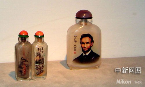 此次展出的二百多件鼻煙壺是臺(tái)灣收藏家葉博文二十多年的心血。據(jù)了解,葉先生原來(lái)是作玉雕收藏的,上世紀(jì)九十年代初,葉與歷史博物館合作,挑選近二百件玉雕珍品,其中也包括部分翠玉、白玉、瑪瑙等寶石鼻煙壺,從南非到歐洲五個(gè)國(guó)家作巡回展覽。令葉先生驚訝的是鼻煙壺所到之處,竟是受到人們的如此喜愛(ài),之后,葉開始側(cè)重鼻煙壺的收藏。