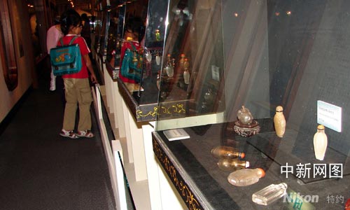 僅僅幾十平方的長(zhǎng)廊,卻從容地?cái)[放著二百多件的展品,在這里,能看到翡翠、玉石、瓷器、水晶、竹、牙,也能欣賞到書畫、雕刻、釉彩、銅胎等等,位于臺(tái)北市南海路的歷史博物館二樓,八月二十九日下午開始的“臺(tái)北鼻煙壺珍品展”,在展示鼻煙壺之精美的同時(shí), 也讓參觀者領(lǐng)略了中華傳統(tǒng)藝術(shù)的博大和豐富內(nèi)涵。