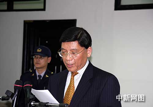 一月七日中午,臺灣高等法院駁回陳水扁對二度遭到羈押的抗告,高院認(rèn)為陳水扁委任律師所提抗告沒有理由,因此予以駁回。全案就羈押部分不得再提抗告。圖為臺灣高等法院發(fā)言人溫耀源在記者會上宣布裁定結(jié)果并解釋裁定書。 (圖文/中新社記者 陳立宇)