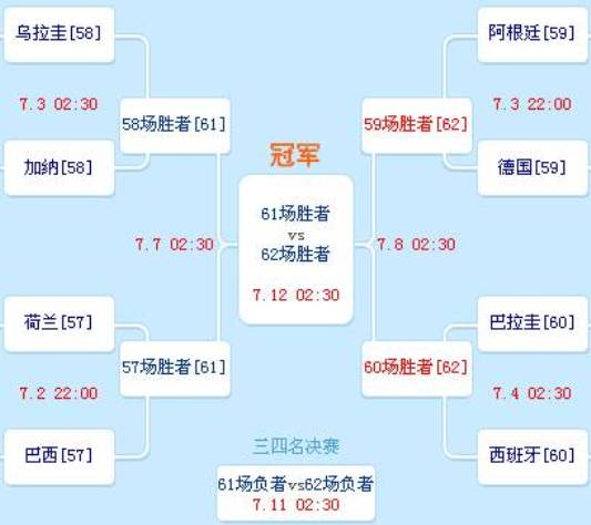 下半?yún)^(qū)的另外一場(chǎng)1/4決賽的期待指數(shù)比德阿、荷巴恐怕會(huì)大大遜色。西班牙隊(duì)將迎戰(zhàn)巴拉圭。以巴拉圭的實(shí)力和表現(xiàn),他們恐怕很難頂住西班牙隊(duì)的強(qiáng)大攻勢(shì),西班牙極可能獲得一個(gè)四強(qiáng)席位,然后在半決賽中與德國(guó)阿根廷之戰(zhàn)的勝利者爭(zhēng)奪一個(gè)決賽名額。