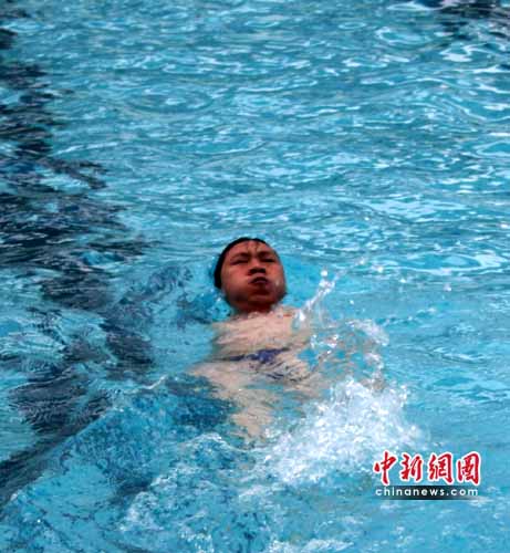 中新網(wǎng)荊門6月30日電(吳奇勇 潘小龍)記者今日在湖北荊門市體育中學(xué)游泳館看見,數(shù)名殘疾人運(yùn)動員正在泳池里刻苦訓(xùn)練,2004、2008兩屆殘疾人奧運(yùn)會冠軍何軍權(quán)也赫然在內(nèi)。