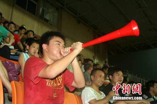中新網(wǎng)南昌7月14日電(劉占昆)南非世界杯剛落下帷幕,2010年中超聯(lián)賽重燃戰(zhàn)火,14日晚上,記者在中超賽場中,看到許多球迷拿著南非世界杯特有的助威“大喇叭”為球隊助威,這就是可以發(fā)出超過一百分貝的“呼呼塞拉”,此前在中超賽場中從未出現(xiàn)過。