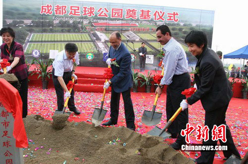 中新網(wǎng)成都7月21日電(記者 楊杰) 21日下午,預(yù)計(jì)投資3000萬元人民幣的成都足球公園正式奠基。亞足聯(lián)主席哈曼專程蒞臨現(xiàn)場,參加了奠基儀式。