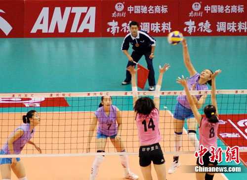 中新網(wǎng)漯河8月1日電 (記者 師紅壘 通訊員 林波)7月31日上午,2010年全國女排錦標賽(雙匯賽區(qū))在漯河市體育中心體育館進行了交叉賽的4場較量,東道主河南隊0:3不敵缺席多名國手的全國女排聯(lián)賽七冠王天津隊,江蘇3:0戰(zhàn)勝遼寧,山東3:1擊敗云南,廣東0:3負于河北。四場比賽的具體比分是:天津-河南(25:16、25:16、25:11);江蘇-遼寧(25:21、27:25、25:18);山東-云南(25:21、20:25、25:19、25:21);廣東-河北(8:25、23:25、12:25)。