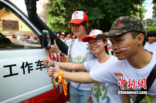 從8月3日開始,主辦方將在廣州20個(gè)“V風(fēng)驛站”向廣大車主免費(fèi)派發(fā)“V風(fēng)車貼”和“V風(fēng)彩帶”,派發(fā)總數(shù)達(dá)近百萬。屆時(shí),2000名V風(fēng)行動(dòng)志愿者將穿志愿服、戴“志愿彩”、行“志愿禮”,進(jìn)駐各大“V風(fēng)驛站”,親手為志愿車主貼車貼、掛彩帶。