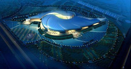 南沙體育館是亞運會武術(shù)比賽場館,因此在設(shè)計上場館也體現(xiàn)了中國武術(shù)的意境。南沙體育館的外殼分九個曲面單元,單元間片片層疊,并分為南北兩組以比賽大廳圓心為中心呈螺旋放射狀展開。這種富有動感的設(shè)計隱喻了中國武術(shù)的最高境界——“陰陽俱合,天人合一”。同時結(jié)合廣東海洋文化的特征,借鑒了富有肌理變化的“海螺”外殼作為造型設(shè)計的意向。南沙體育館主體鋼結(jié)構(gòu)部分采用了雙層環(huán)形張弦穹頂結(jié)構(gòu),主跨度達到了98米。