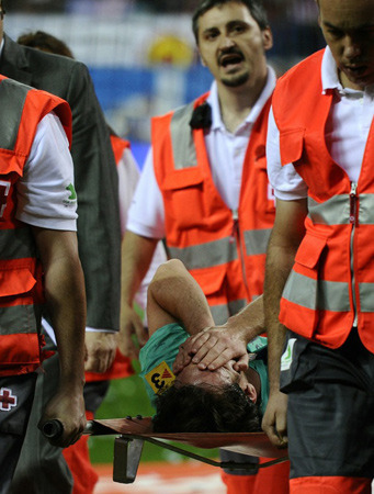 巴薩2-1客場戰(zhàn)勝馬德里競技,贏得比賽勝利的同時也付出了慘重的代價,比賽進(jìn)行到補時第2分鐘,梅西在帶球過程中被馬德里競技后衛(wèi)烏伊法盧西踩中腳踝受傷,被擔(dān)架抬離賽場。痛苦不已的梅西在擔(dān)架上雙手掩面,而腳踝夸張的浮腫程度也預(yù)示著這次受傷的嚴(yán)重性。盡管烏伊法盧西因此被直接紅牌罰下,也難改梅西右腳踝韌帶損傷的事實。
