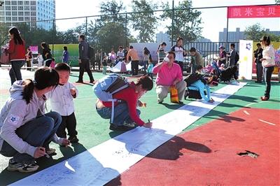 昨天上午9點,建外SOHO文化體育廣場迎來首屆寶寶亞運會。百余名寶寶在家長的引導(dǎo)下,在象征著亞運會開幕時間的11.12米長的橫幅上,親手寫下自己的名字和祝福;顒蝇F(xiàn)場,寶寶們在父母的陪伴下盡享運動的樂趣。據(jù)了解,此次活動是由朝陽區(qū)建外社區(qū)及中國婦女兒童喜愛品牌辦公室聯(lián)合主辦,橫幅將于近日寄往亞運組委會。