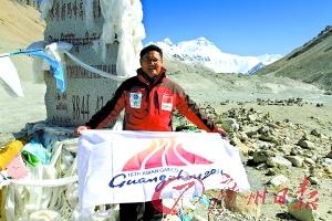 從廣州到溫哥華再到珠穆朗瑪峰,8個月的時間,上萬公里的路程,這幅肩負著廣州亞運會宣傳任務的旗幟終于飄揚在珠峰上。