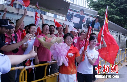 和黃利榮一樣處于興奮之中的羅湖邊檢站的同事們,早在兩天前就前去傳遞路線踩點。18日當(dāng)天幾十名民警自發(fā)前往市民中心,拉著橫幅、高舉國旗,在火炬?zhèn)鬟f沿線為黃利榮吶喊助威。黃利榮表示,平安亞運任重道遠(yuǎn),她將以火炬?zhèn)鬟f為動力,和她的同事們一起,在邊檢崗位上竭誠為出入境旅客服務(wù),為實現(xiàn)‘平安亞運’的目標(biāo)不懈努力,做傳播亞運精神的文明使者。完