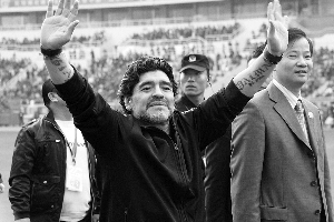 15時(shí)30分,離比賽規(guī)定開始的時(shí)間已經(jīng)過了半小時(shí),球場上空空如也,球迷們開始不滿,敲著鼓喊著馬拉多納的名字。15時(shí)50分,看臺(tái)上一陣歡呼,馬大帥駕到。他邊走向主席臺(tái)邊沖球迷們揮著手,還不時(shí)送個(gè)飛吻。為表遲到的歉意,老馬要求到場地走一圈。