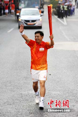 9日上午10時(shí)38分,在廣州市解放北路,伴隨群眾的歡呼和掌聲,亞運(yùn)會(huì)第22棒火炬手何錦坤順利完成亞運(yùn)火炬?zhèn)鬟f,他激動(dòng)地說(shuō):“在‘119消防日’傳遞火炬,對(duì)我而言更具紀(jì)念意義,終生難忘。”