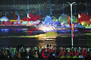 花船巡游將成為一道亮麗的風(fēng)景線。還有兩艘特別的船,其一是在演出過(guò)程中發(fā)揮重要作用的帆屏,LED帆屏一展開(kāi),海心沙就變成了一艘大船,另一個(gè)是艘巨大的道具帆船。