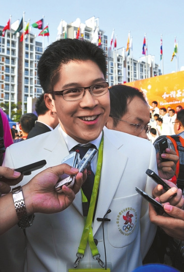 升旗儀式結束后,霍啟剛便和香港代表團的運動員們簇擁在一起合影留念,作為代表團副團長的他,自然沒有忘記自己的身份!斑@一次你會去看跳水嗎?”當華西都市報記者將這個問題拋給霍啟剛時,他笑了一笑:“我就知道你要問我這個問題,在香港我就一直被問這個問題,到這里來還是被問這個問題,哈哈!被魡偟钠胀ㄔ挿浅藴,周圍的香港媒體聽到了霍啟剛這樣回答,也都笑了起來。
