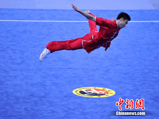 身穿紅色戰(zhàn)衣的袁曉超當(dāng)早出現(xiàn)在亞運男子長拳比賽的現(xiàn)場。在向觀眾抱拳致禮后,袁曉超邁步出拳,1分20秒的動作套路一氣呵成,姿勢舒展,猶如行云流水一般,最后他得到了全場最高分──9.78分。