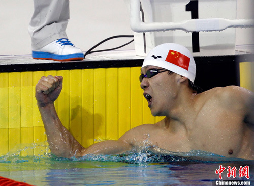 他同時還對與自己鄰道的“世界蛙王”北島康介表示尊重,“我很崇拜北島康介,和他一起比賽很興奮。”對于當晚的比賽表現,謝智稱“很滿意”,他給自己打了95分,他說扣掉的5分是在出發(fā)方面。