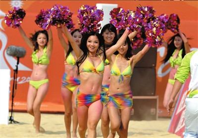 本屆亞運(yùn)會(huì)的沙排寶貝分為兩類,一類是廣州本地的,有三支隊(duì)伍,都是職業(yè)拉拉隊(duì),昨天中午表演的是平時(shí)服務(wù)于CBA聯(lián)賽的;另外一支拉拉隊(duì)來自北京師范大學(xué),是通過亞運(yùn)拉拉隊(duì)海選的佼佼者,其中幾個(gè)姑娘還參加過北京奧運(yùn)會(huì)的拉拉隊(duì)表演。這些女孩子很有鏡頭感,一看到鏡頭,紛紛爭著擺各種姿勢。女孩們昨天剛剛拿到亞運(yùn)會(huì)的工作證,一個(gè)女孩兒指著自己脖子上的證件說:“你知道我掛著這個(gè)證件,走在廣州大街上有多光榮嗎?”本報(bào)記者蒲東峰攝(記者劉旭輝)