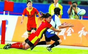 中國隊員孫婷婷死死抱住球,敏捷地閃開強壯的“追兵”,一路狂奔沖過底線。只要她將球按在地上,中國隊就能在最后時刻反超對手,奪得亞運會女子7人制橄欖球的冠軍。就在全場觀眾開始振臂歡呼時,孫婷婷手中的球卻掉落在地——根據規(guī)則,此球不得分。中國隊今天最終以14比17不敵哈薩克斯坦隊,獲得亞軍。