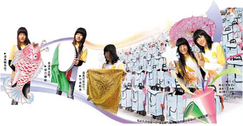 最值得一提的是,在海心沙舞臺(tái)上,每名合唱隊(duì)員都有一個(gè)道具“百寶箱”,這個(gè)藍(lán)色布袋中裝著6件“秘密武器”,需要配合不同歌曲來(lái)表演,營(yíng)造舞臺(tái)氣氛。其中有《月光光》時(shí)的浪花板和魚(yú)板,《櫻花》時(shí)的粉紅小傘,印尼歌曲時(shí)的星星索,印度歌曲時(shí)的紗巾,黎巴嫩歌曲時(shí)的小鼓。