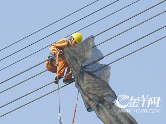 當(dāng)天中午11時(shí)許,輸電部亞運(yùn)保電巡維人員萬(wàn)賀彪在巡視220千伏安遠(yuǎn)甲線時(shí),發(fā)現(xiàn)N54-N55段A相導(dǎo)線懸掛一條長(zhǎng)約20米的黑色膠網(wǎng),并針對(duì)此情況立即向輸電部應(yīng)急辦匯報(bào),輸電部應(yīng)急辦公室隨即協(xié)調(diào)管轄班組進(jìn)行消除工作。緊急缺陷就是命令,班組接到詳細(xì)現(xiàn)場(chǎng)的信息后,通過(guò)技術(shù)分析和方案比較,確定現(xiàn)場(chǎng)不具備帶電作業(yè)的條件。于是向輸電部應(yīng)急辦提出臨時(shí)停電消缺處理。