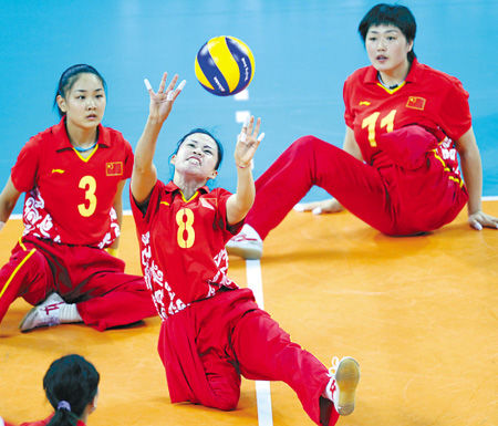殘奧會(huì)坐式排球比賽方式與奧運(yùn)會(huì)排球比賽方式基本相同,但有部分特殊規(guī)定:例如坐式排球的比賽場(chǎng)地小于6人排球比賽場(chǎng)地;在比賽過程中運(yùn)動(dòng)員需坐在地上進(jìn)行比賽,其臀部必須保持與地面接觸,不允許站立和行走;在沒有妨礙對(duì)方完成技術(shù)動(dòng)作的情況下,允許隊(duì)員的手和腳越過中線;防守隊(duì)員可以直接攔截發(fā)球等。(來(lái)源: 亞殘運(yùn)會(huì)官方網(wǎng)站)