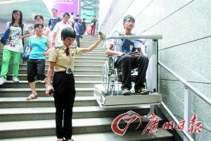 目前已經(jīng)完成天河購(gòu)物城、北京路廣百商場(chǎng)、上下九步行街、友誼環(huán)市東店等購(gòu)物熱點(diǎn)無(wú)障礙設(shè)施改造,包括增加低位收銀臺(tái)、設(shè)置無(wú)障礙電梯等。其中,北京路廣百商場(chǎng)還專門在南門增設(shè)了無(wú)障礙坡道和樓梯升降機(jī)。