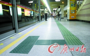 目前廣州市已經(jīng)完成全部亞運(yùn)城運(yùn)動(dòng)員村、廣東奧體中心總平面整體改造工程及19個(gè)亞殘運(yùn)會(huì)場(chǎng)館的無(wú)障礙設(shè)施建設(shè)(其中比賽場(chǎng)館13個(gè),訓(xùn)練場(chǎng)館6個(gè));完成新建和改造盲道1129.34公里,坡道11827個(gè),設(shè)置了1000套盲人過(guò)街音響信號(hào)裝置;完成41個(gè)社區(qū)和113戶家庭無(wú)障礙設(shè)施改造;組織實(shí)施了公園、商場(chǎng)、接待酒店等公共場(chǎng)所和30多個(gè)宗教場(chǎng)所無(wú)障礙設(shè)施改造,尤其地鐵幾乎每個(gè)車站至少配有兩個(gè)出入口設(shè)置盲道。