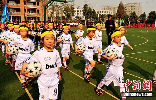 下午,陽光燦爛。來自10所小學的300名女足小隊員身著球衣和運動裝,各自抱著一個足球整齊列隊出場。稚氣的臉配上氣勢十足的口號,讓人感到格外意氣風發(fā)。