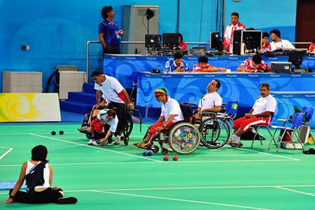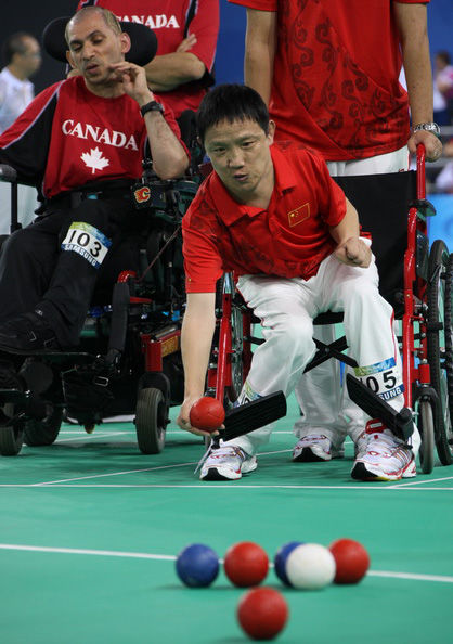 硬地滾球是目前殘奧會(huì)20個(gè)競(jìng)賽項(xiàng)目中沒(méi)有對(duì)應(yīng)奧運(yùn)會(huì)競(jìng)賽項(xiàng)目的三個(gè)特殊項(xiàng)目之一(其它兩個(gè)項(xiàng)目是盲人門(mén)球和輪椅橄欖球)。參加的運(yùn)動(dòng)員都是嚴(yán)重的腦癱患者或類(lèi)似病癥需要使用輪椅的患者。腦癱者是指那些由于腦損傷而影響肌肉運(yùn)動(dòng)控制和肌肉運(yùn)動(dòng)協(xié)調(diào)性的人。由于動(dòng)作反射行為方面發(fā)育不正常,腦癱者的協(xié)調(diào)性和平衡能力很差,所以要特別注意腦癱者的力量、柔韌性和協(xié)調(diào)性的發(fā)展。硬地滾球運(yùn)動(dòng)雖然使用的肢體動(dòng)作較少,但是又需要運(yùn)用策略和技巧,是特別適合重度動(dòng)作控制困難的殘疾人的競(jìng)賽活動(dòng)。同時(shí),硬地滾球是一項(xiàng)考驗(yàn)運(yùn)動(dòng)員的肌肉控制力和準(zhǔn)確性的運(yùn)動(dòng)項(xiàng)目,要求運(yùn)動(dòng)員在比賽中注意力高度集中,有利于幫助他們發(fā)展身體的協(xié)調(diào)性?傊,參加硬地滾球競(jìng)賽活動(dòng),有利于腦癱患者生理和心理的康復(fù)?梢哉f(shuō),該項(xiàng)目是充分體現(xiàn)對(duì)腦癱患者人文關(guān)懷的一項(xiàng)運(yùn)動(dòng)。 (來(lái)源: 亞殘運(yùn)會(huì)官方網(wǎng)站)