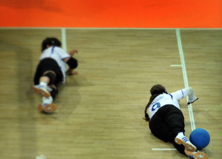盲人門球運(yùn)動(dòng)是根據(jù)盲人視力障礙特點(diǎn)而專門設(shè)計(jì)的一項(xiàng)集體球類項(xiàng)目,它需要運(yùn)動(dòng)員根據(jù)觸覺(jué)來(lái)確定自己在場(chǎng)上的位置、方向;根據(jù)聽(tīng)覺(jué)來(lái)判斷球的方向、速度,從而迅速做出反應(yīng)。這項(xiàng)運(yùn)動(dòng)的形式適合于盲人視覺(jué)功能障礙的局限,集安全性、競(jìng)技性、觀賞性于一體,既突出運(yùn)動(dòng)員個(gè)人技術(shù)又強(qiáng)調(diào)團(tuán)隊(duì)配合。有人作了這樣的比喻:“盲人門球運(yùn)動(dòng)是一項(xiàng)球似籃球,球門似足球,而擲球動(dòng)作像保齡球的運(yùn)動(dòng)! (來(lái)源: 亞殘運(yùn)會(huì)官方網(wǎng)站)