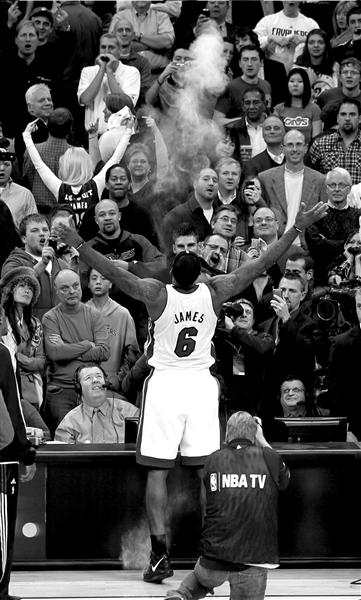 出場前,詹姆斯又拿出了招牌動(dòng)作——張開雙臂,拋撒鎂粉。這個(gè)囂張的動(dòng)作讓克里夫蘭球迷忍無可忍。相比之下,同樣出自克里夫蘭的“大Z”伊爾戈斯卡斯還是受到了歡迎,賽前他就說過:“我喜歡克里夫蘭,這里一直是我的家。過去許多年,這里的球迷對我來說意味著很多,這永遠(yuǎn)不會(huì)改變!