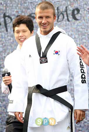 組圖:貝克漢姆亮相首爾 穿跆拳道服英氣逼人