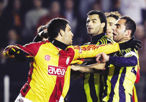 土耳其超級(jí)聯(lián)賽昨晨舉行了一場被稱之“國家德比”的焦點(diǎn)大戰(zhàn)。最終加拉塔薩雷0:0戰(zhàn)平費(fèi)內(nèi)巴切。比賽結(jié)果雖然平淡,比賽過程卻異;鸨ち遥荣愖詈髸r(shí)刻雙方球員起了激烈沖突。導(dǎo)火索是加拉塔薩雷隊(duì)的攻擊型中場阿爾達(dá)·圖蘭在比賽的最后一分鐘,與費(fèi)內(nèi)巴切的西班牙國家前鋒丹尼爾·古伊薩起了摩擦,圖蘭當(dāng)場掌摑古伊薩。雙方球員見狀都失去了理智,最終發(fā)展成為群毆。