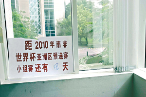 當然,駐地生活條件雖好,但國足上下人人牢記,此行的目的是打一場硬仗而非旅游。在二層電梯出口處,一塊“倒計時”的牌子立在醒目處,這塊牌子從去年12月開始就和國足的集訓生活緊密相連,曾先后被擺在了清新、廣州等地的訓練場上。直到今天,這塊牌子上的倒計時天數(shù)是:6天!(張喆)