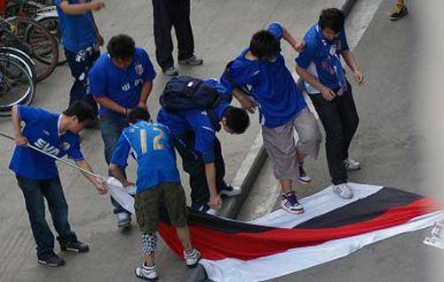 5月3日河南四五老窖隊客場對陣上海申花隊的比賽前,發(fā)生了上海部分球迷毆打我河南球迷的野蠻行為,還集體踐踏我河南球迷團隊的助威旗幟。對此我們表示對上海賽區(qū)委員會的強烈抗議,并要求上海賽區(qū)委員會對部分滋事上海球迷進(jìn)行嚴(yán)厲處罰。